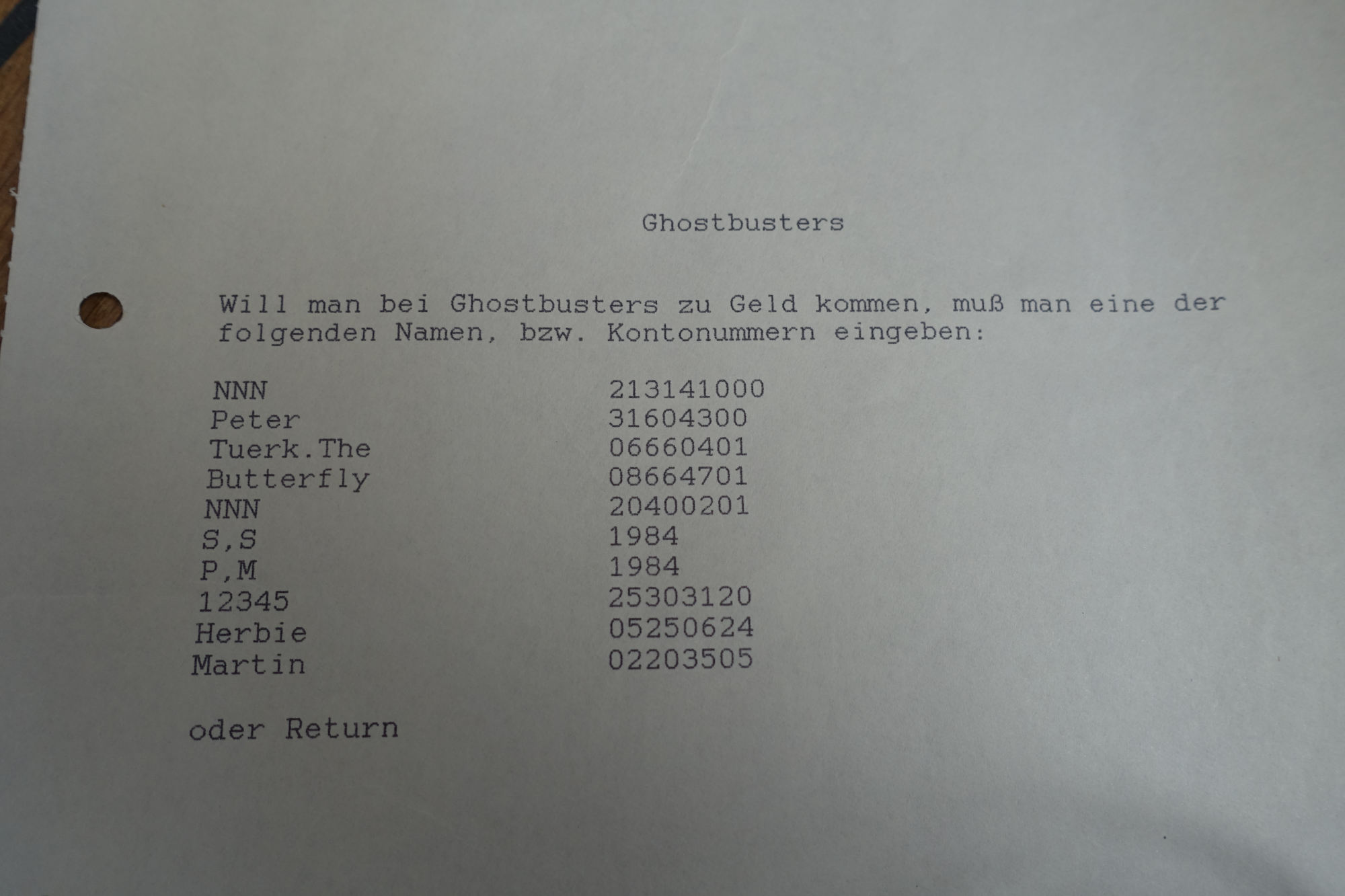 Adventure and role-playing games in particular have always led to a lot of notes and map material, but other games also had information worth keeping. An example of this are cheat codes such as for the game Ghostbusters: