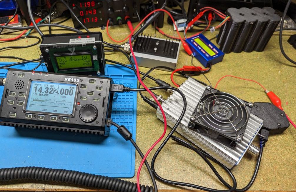 - Transceiver: Xiegu X5105 (set to 20m, SSB and 3W output power, using internal battery)