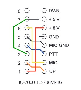 Posted on 2022-12-04 by DK1MII wanted to use my BX-184 microphone which has a built-in voice keyer with my new Xiegu X5105. It was used with the FT-817 until now and I enjoyed the parrot very much during my POTA activations. I’ve read that the Xiegu would use the same wiring as the IC-7000 so I followed the instructions of the manual (https://www.box73.de/file_dl/bausaetze/BX-184_en.pdf, page 3, bottom right). The mic itself worked but PTT was not. Analysing the original microphone, I realized that I need to connect MSVSW (Pin 3) with GND (Pin 7). Now PTT, and with this, the parrot is working, too.
