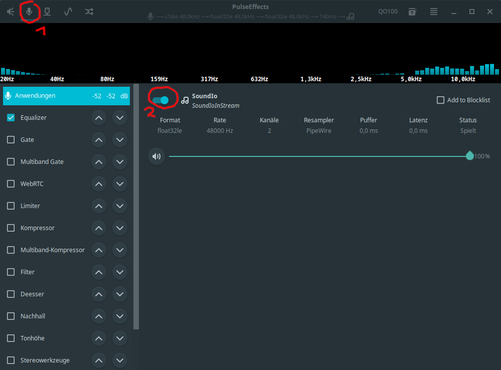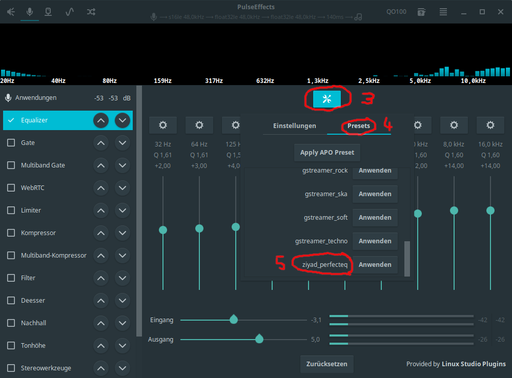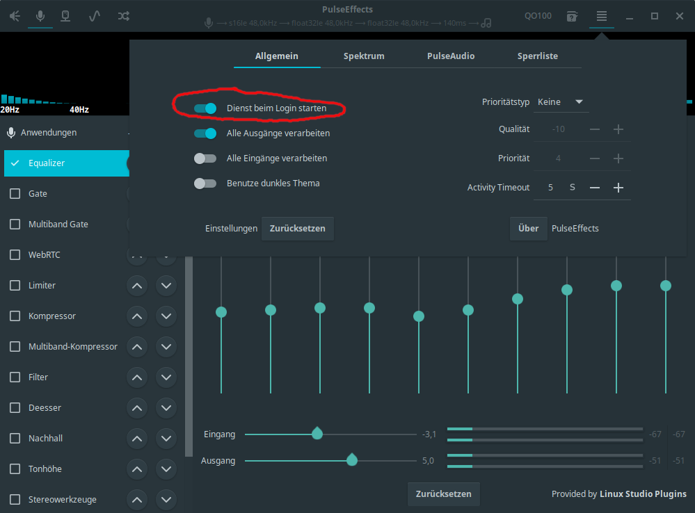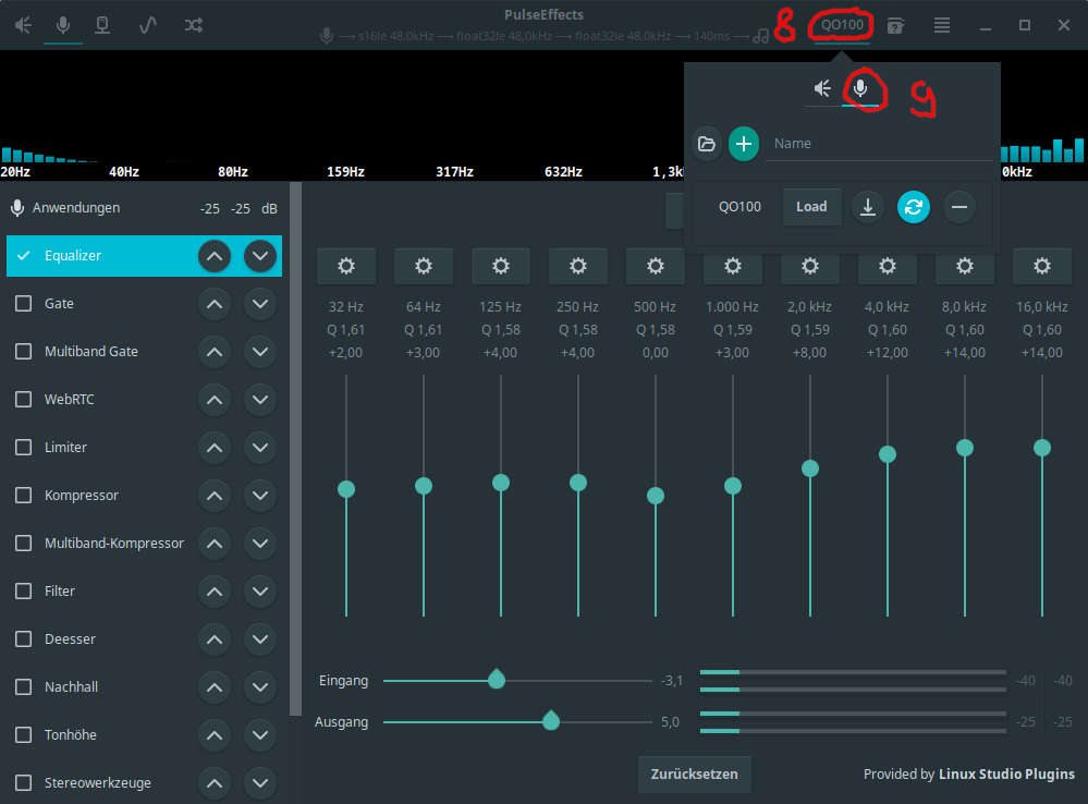 PulseEffects as Equalizer for the QO-100 Linux Transceiver
