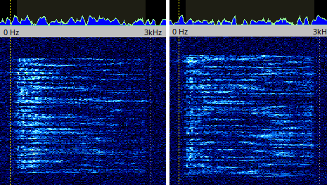 The following screenshot shows my signal on the waterfall with the equalizer disabled (left side) and how the signal looks like with the above settings applied (right side):