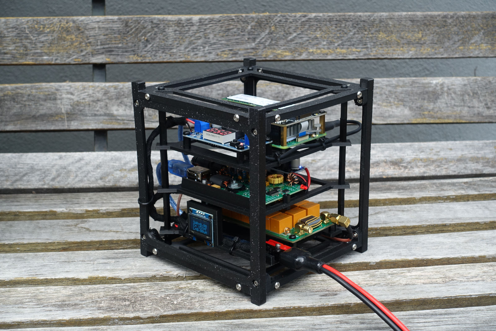 Before the implementation began, I first had to come up with an idea for a suitable enclosure. After seeing a CubeSat at Hamradio 2024 in Friedrichshafen, I had the idea of making the entire setup look like a CubeSat and building it on a modular, skeleton-like structure. I finally found inspiration in the following design on Thingiverse: https://www.thingiverse.com/thing:4096437