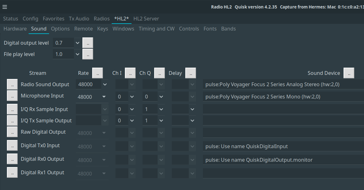 The following screenshot shows how I’ve set up the audio settings in Quisk: