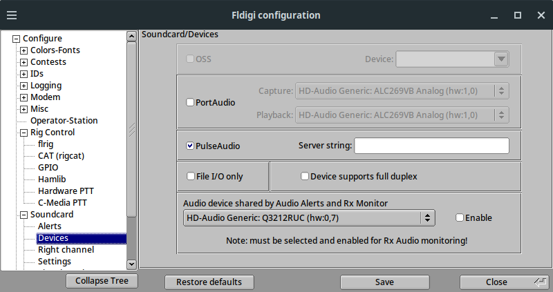 FlDigi: Soundcard - Devices