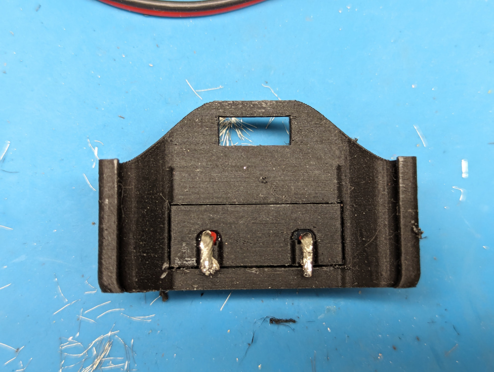 The prepared component was then glued into the printed part “Charger” with superglue. Once the glue had hardened, I cut the wires to length and soldered them to the 2S 2A USB-C charger PCB: